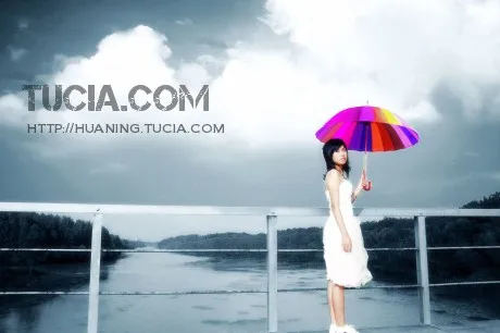伞的颜色很失败,其实你直接用原来伞的颜色就ok。那样更好。或者天空变成乌云,然后增加一下雨点。《雨中漫步》那样非常唯美!