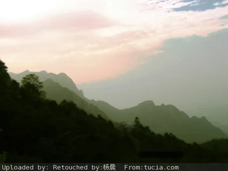 庐山的景色,做得缥缈一点,山上的缆车去掉,天空中的云彩调一下色,山的远近层次清晰一点..谢谢!!