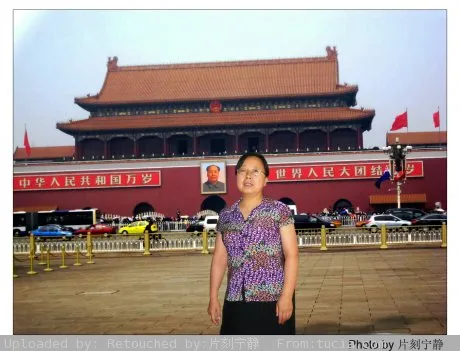 想尽一份孝心 背景换到天安门吧 谢谢 人处理的年轻一点儿 谢谢大侠了