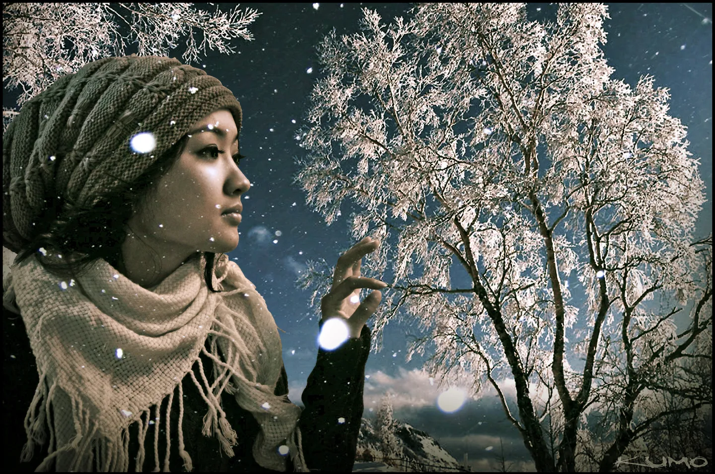 给朋友拍的。 想要合成的。 玻璃外换成雪景之类吧! 求有感觉的大师接~! 谢谢!