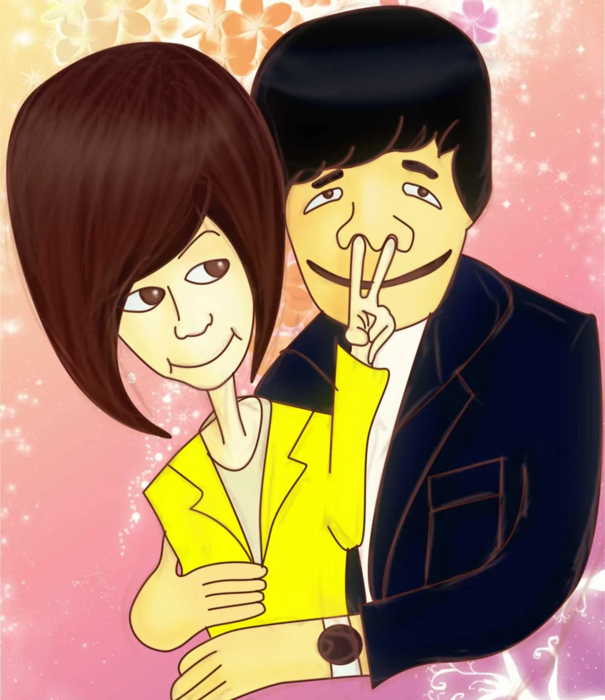 合成情侣照吧~~弄成卡通的手绘的,可爱点,(*^__^*) 嘻嘻……如果是头和身体的合成,请稍微协调点,不要一眼看出很假。谢谢大师啦!