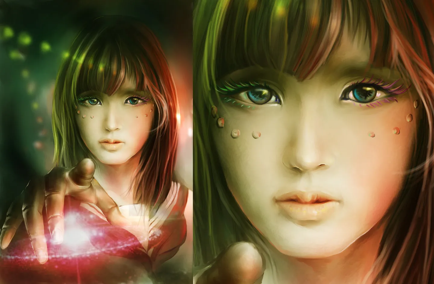 头发刻画不够细,脸部很唯美,