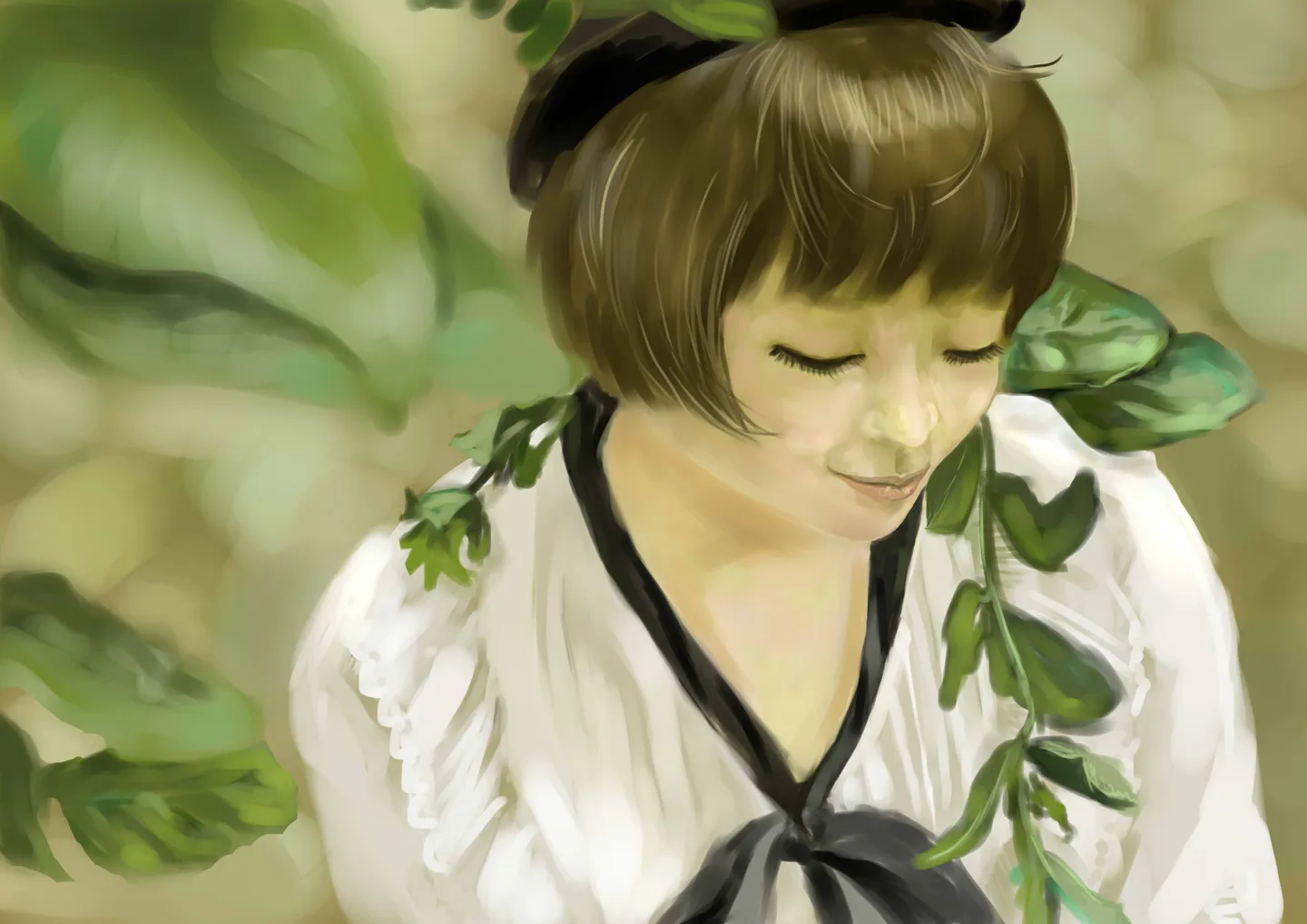 头发和背景画的很不错~~就是脸有点变形了