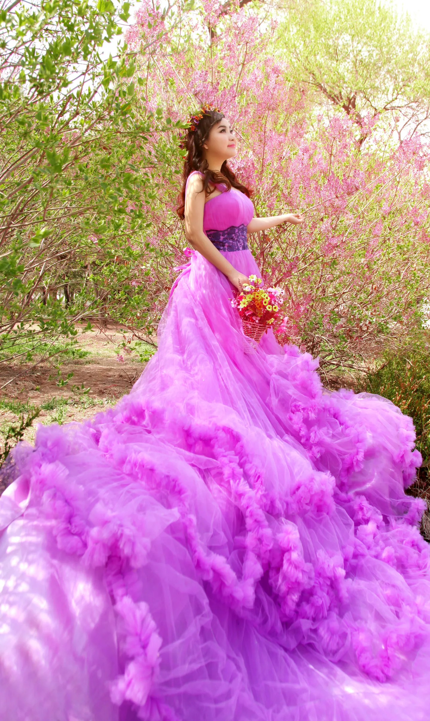 多了很多花啊,裙子也拉长了,好棒