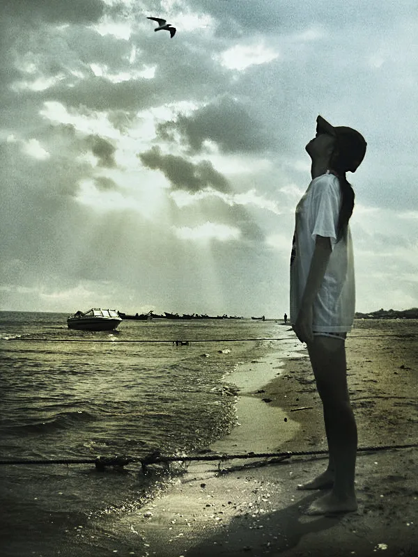 衷心感谢snow white queen,和GOGO柳的建议。晚上再看一下,衣服周围是处理的不太好,而且云再往右拉伸一些会更理想。我会继续努力。谢谢大家的意见。