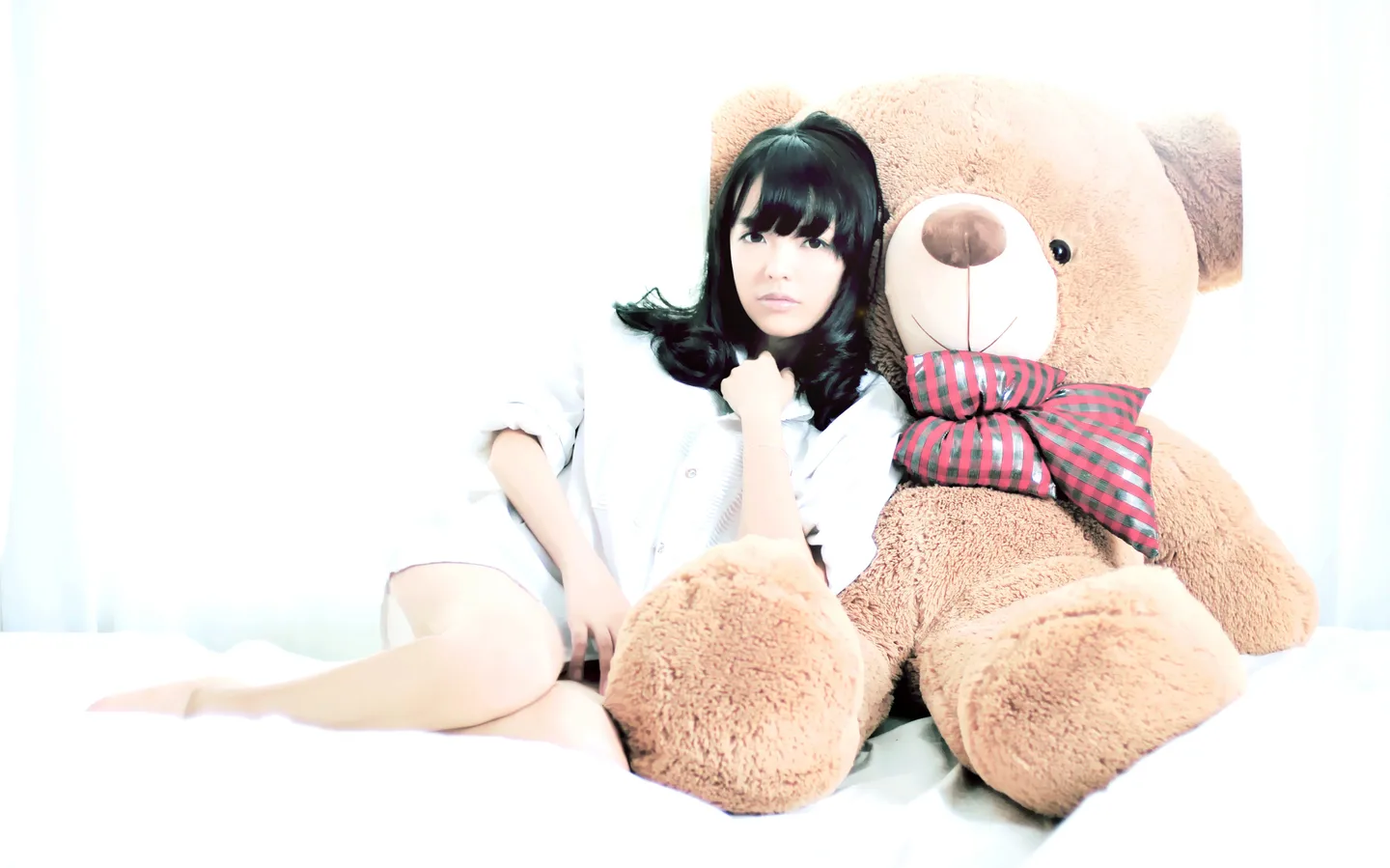 1稍微把小腿处修细一点。 2这张照片除了白,就没有特点了。请调点比较日系的色调 基调:欢悦明快的