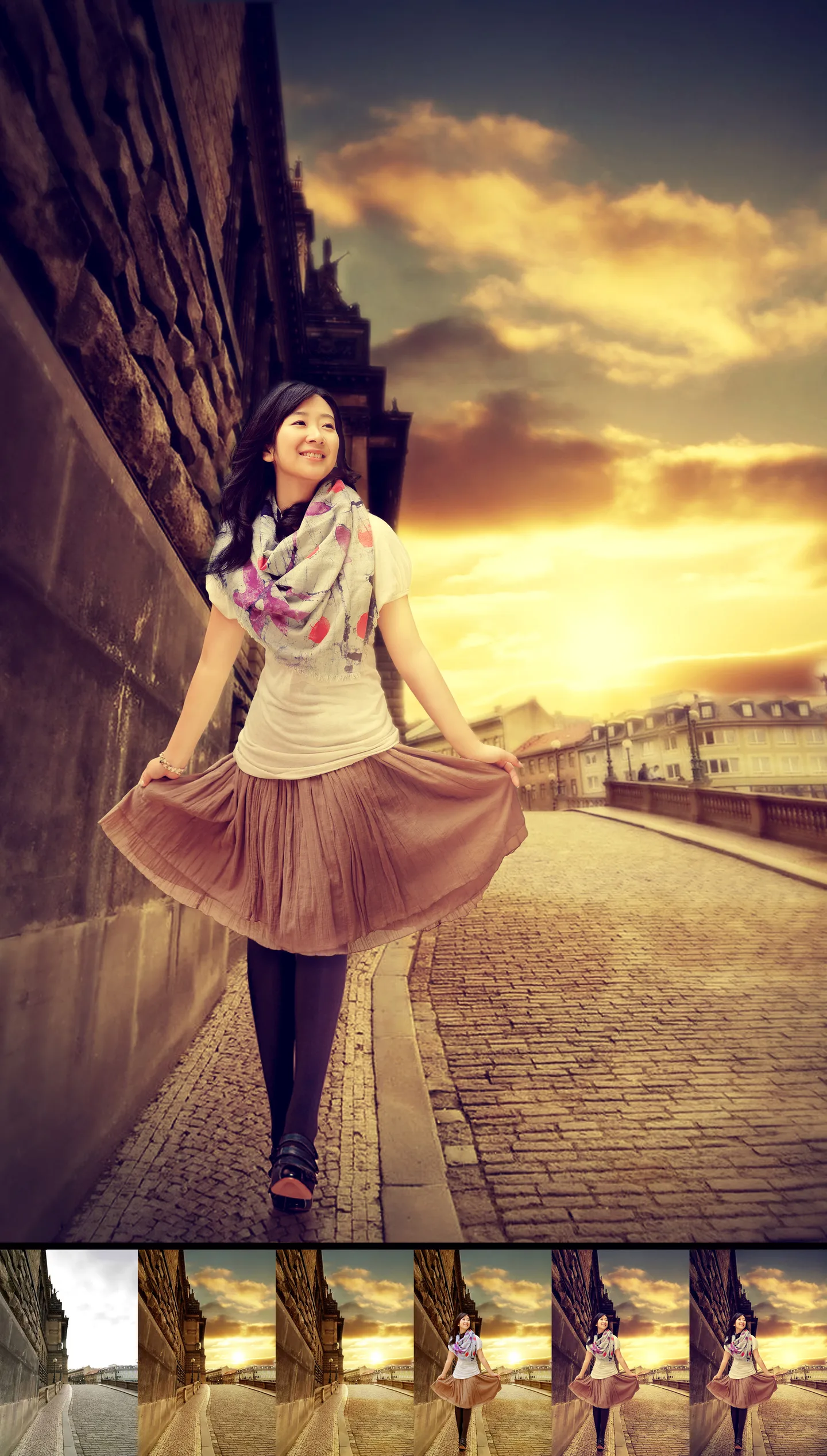 原片人物的拍摄角度为斜侧向上,我加的城墙也还刚刚好,我做的时候就注意到的啊。。。