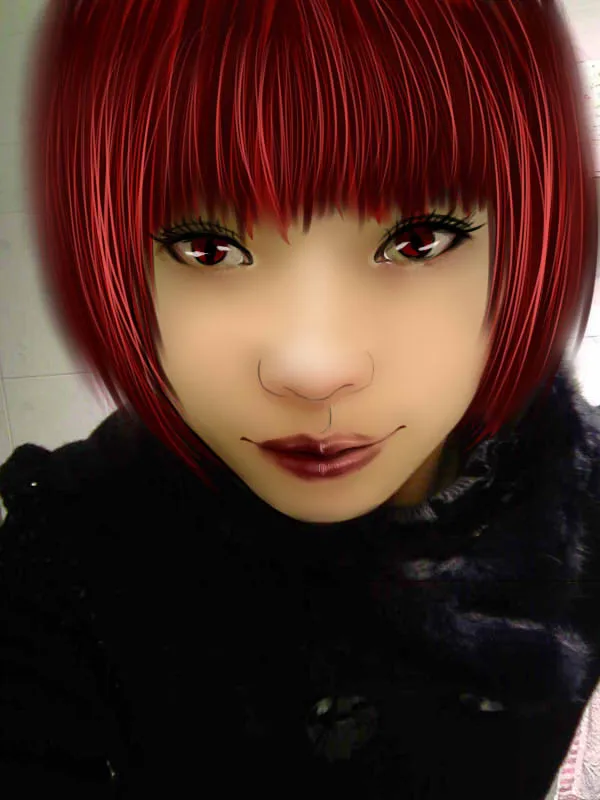 呃,我不知道怎么说好,能弄出那个鬼新娘妆容吗,红色的眼影,红色的嘴唇。当时我要是披着头发估计比较有效果吧! 美化人物脸部