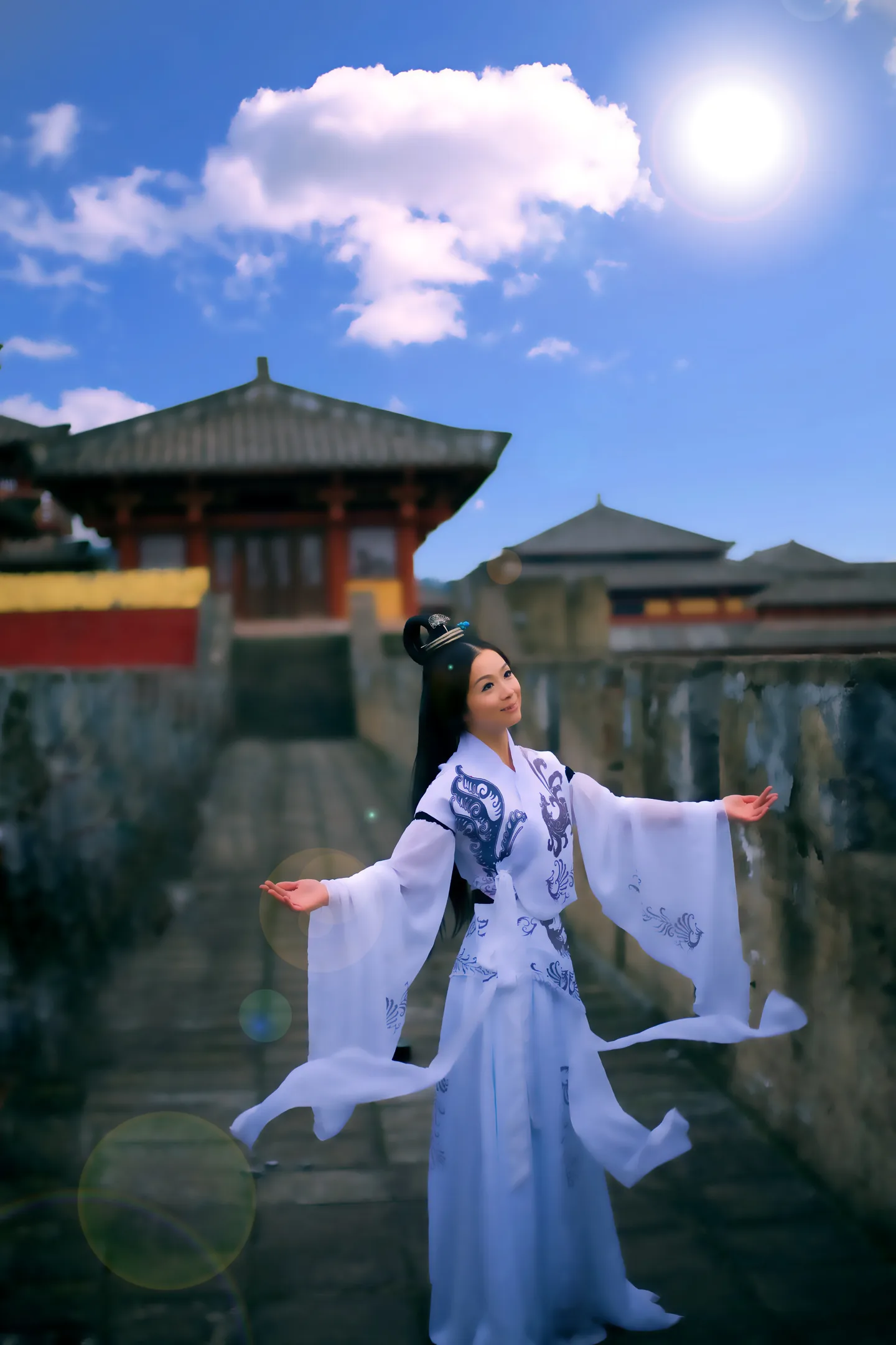 脸型跟五官不要修,身材修瘦吧,然后帮我把左边的铁架修掉,谢谢 基调:典雅唯美