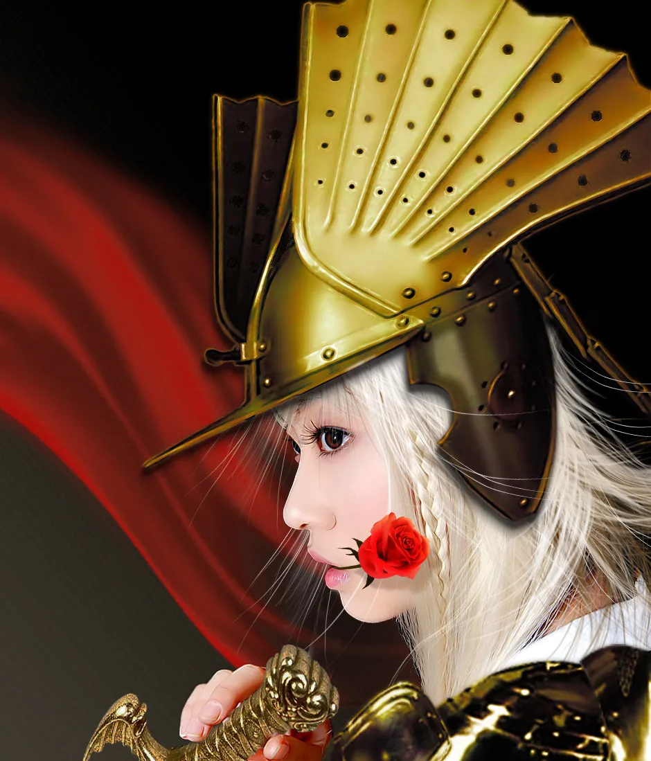 玫瑰花,金色头盔,好棒。