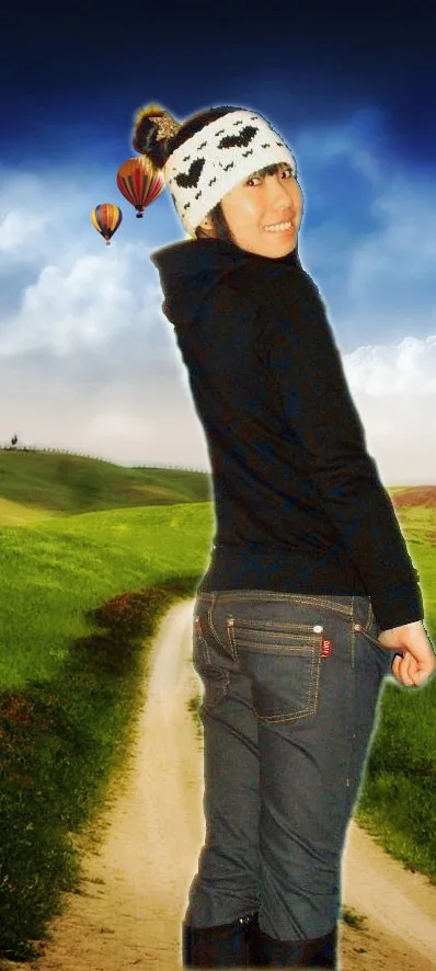 想加个背景,保持原图比例,身材稍做处理,保持真实性,麻烦大师了!