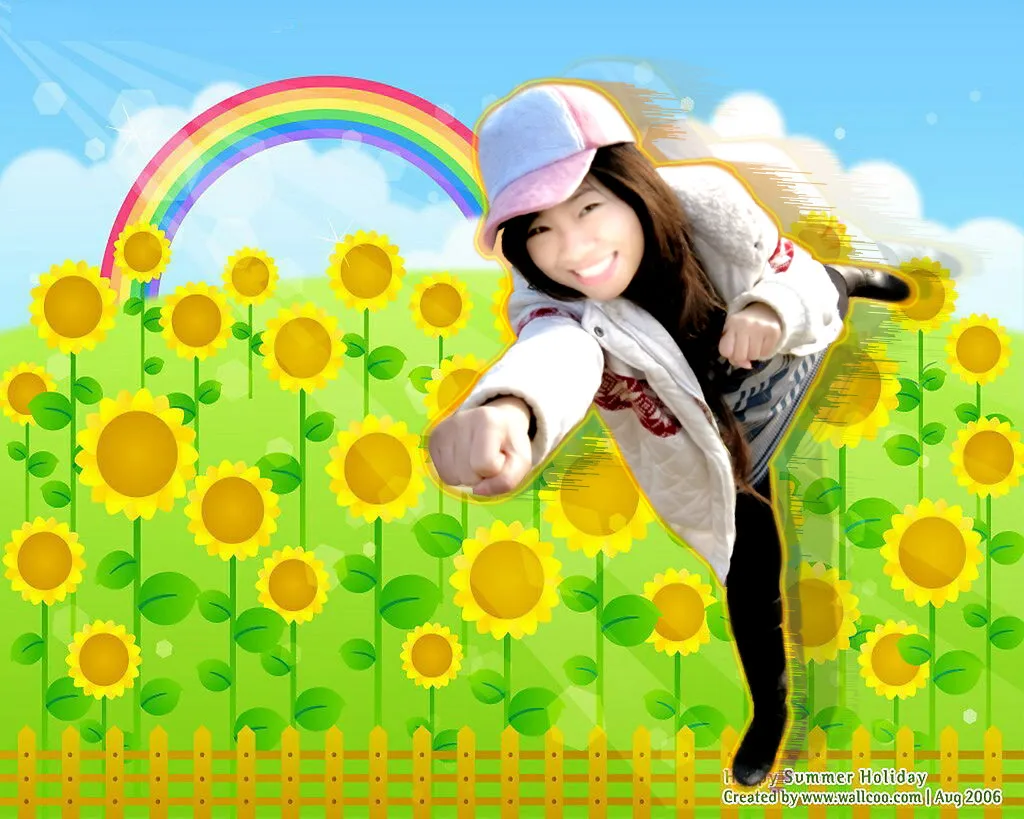 卡通Q版一些 眼睛有些肿 麻烦P一下嚄 而且皮肤要弄瓷一些啦 拜托啦 背景请随意发挥 卡通最好啦 用途:娱乐 基调:欢悦明快的