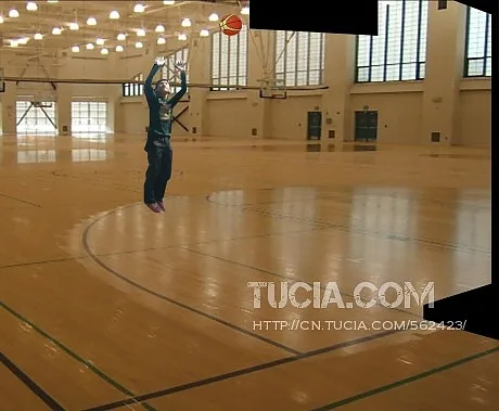换个操场的背景。手上投个篮球。效果图就是像“投篮”一样。背景和人物什么的等等。尽量做的协调一点。看起来真实一点。谢谢。
