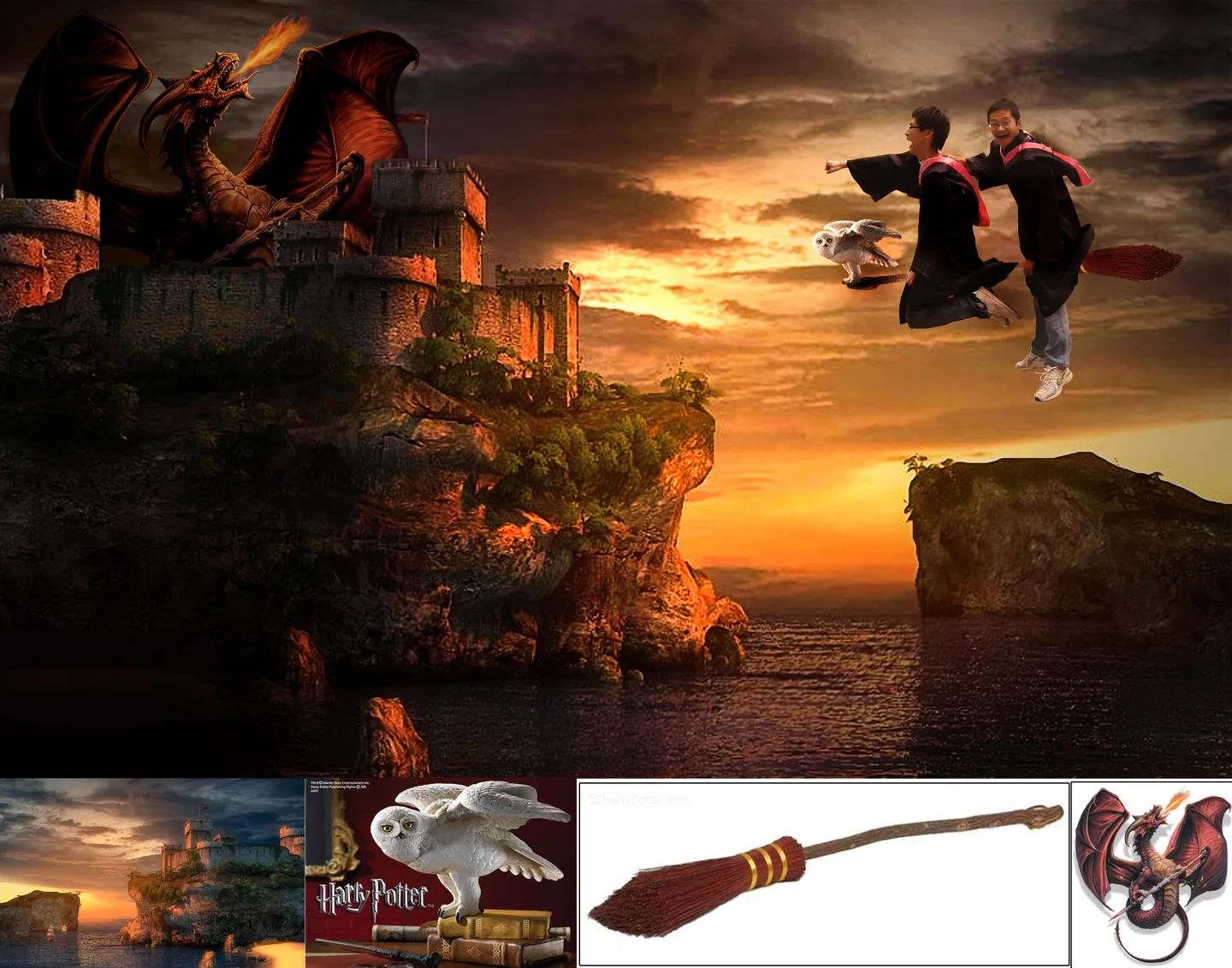 估计是扫帚不太明显造成的。先我还以只是两个人在飞,结果是骑在扫帚上。。