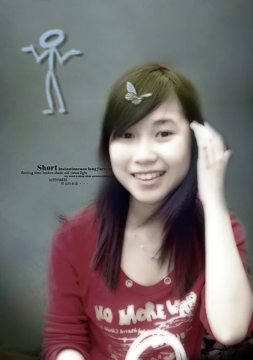 哇~参考图片那个样子真是太可爱了~超赞~ 我也想有哪位PS高手可以把我做成那个样子~嘿嘿 脸部基本上就照参考图片那么做了,头发染成那种颜色. 把脸上痔去掉,皮肤变的好一些,这张图上我的头发很乱,请帮我弄一下,让它看起来整齐一些,脸部看起来可爱,又有非主流的感觉. 后面的背景图换一个就象参考图片那样很和人物相配的背景看起来很舒服的,容入一点搞笑的东西和元素,不要太幼稚. 脸上那个桃心上面的字改成FOREVER SWEET 把图片上的日期涂掉~ 十分感谢~