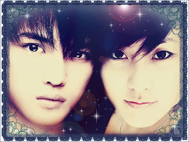 把右边的人的眼睛再修修,弄的有神闪亮点,和在中一致就更好啦