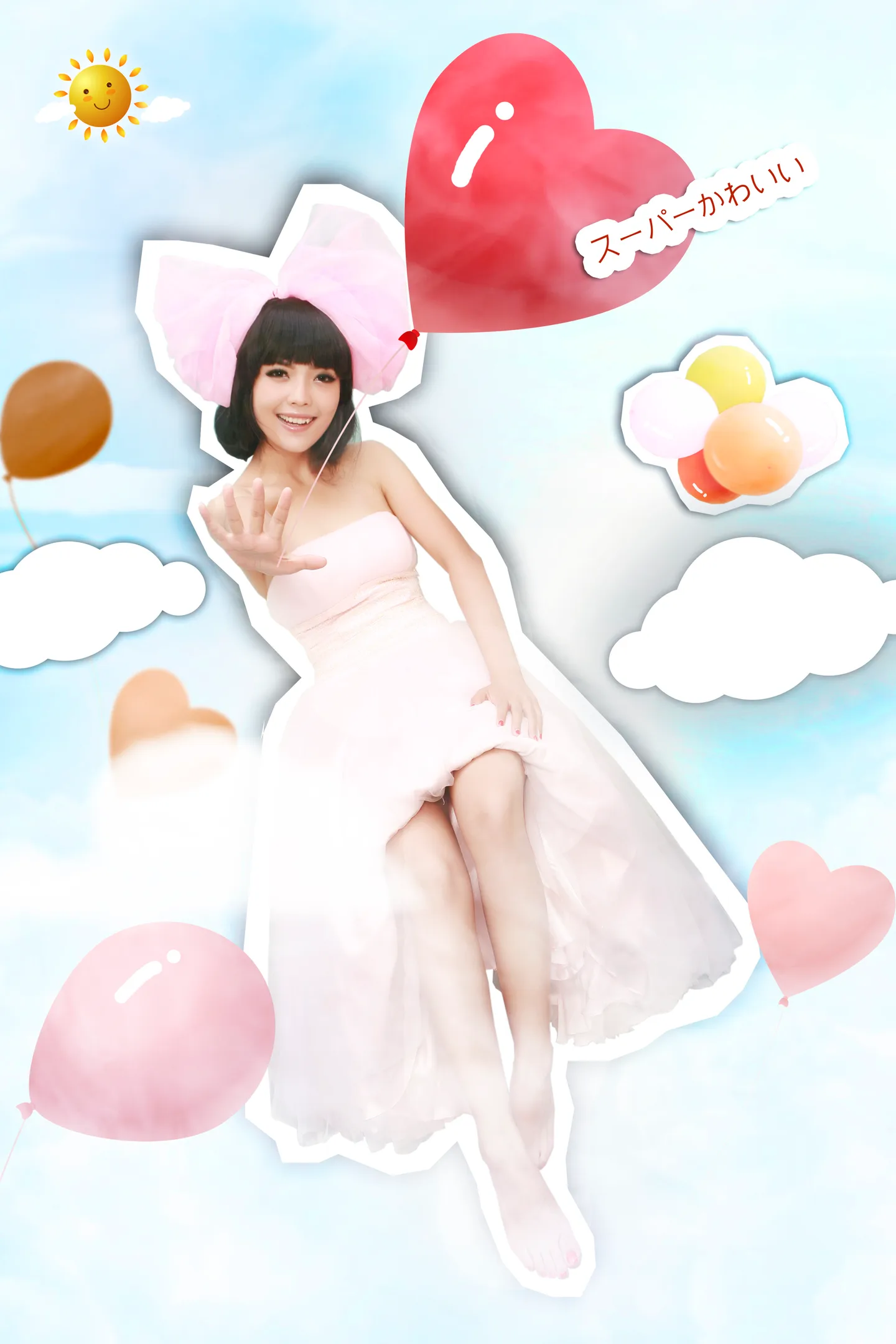 求好心人收留~~ 求云彩,求被P多多的气球(注意近大远小的关系) 色调人物不用改。拜谢