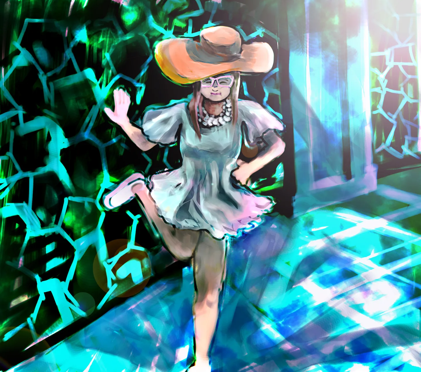 一秒变夜店,就是把人画肥了点,其他很棒~~!!