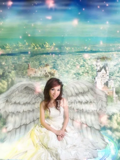 喜欢背后的翅膀。但人物和后面的背景不是十分的融合。