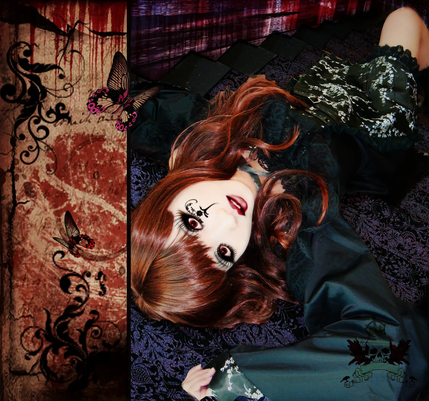 头一次在照片上化歌特妆……以前都是直接化在人脸上……||||眼妆费了些力气,放大了看会比较清楚……