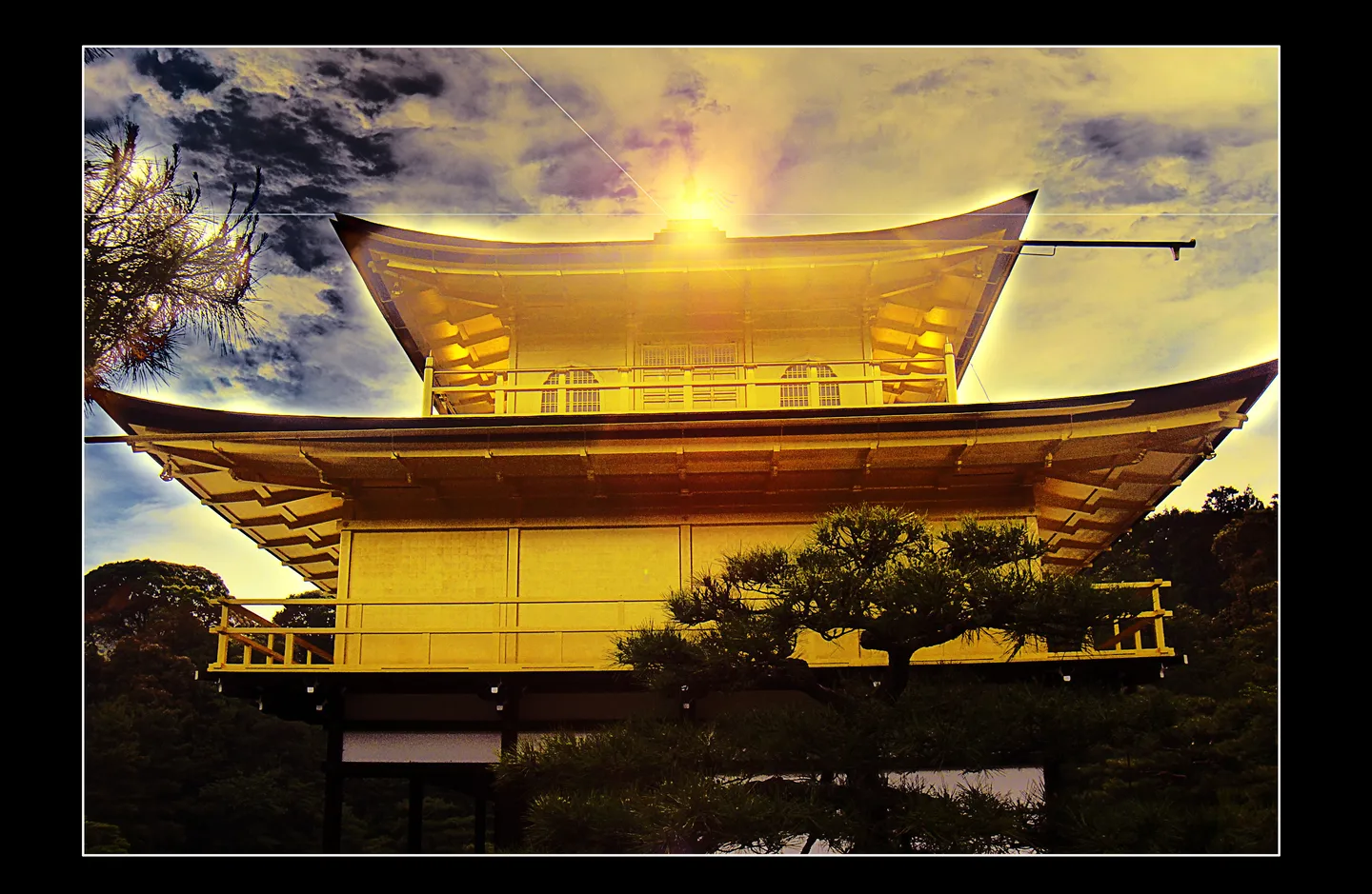 实拍,比较喜欢的一张,请高手调色。 基调:典雅唯美 艺术化:轻微艺术化 金阁顶部的阳光~ 然后把底部不协调的人头给去了吧