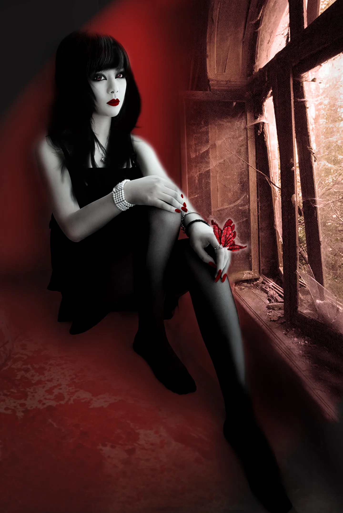 哥特风格!脚步腿部做个阴影就完美了!还有肩膀部位是不是太模糊了?你这个鬼是想让别人看出她是KK吗?我也有张相似的,呵呵!我是不想让别人看出那是KK!哈哈!