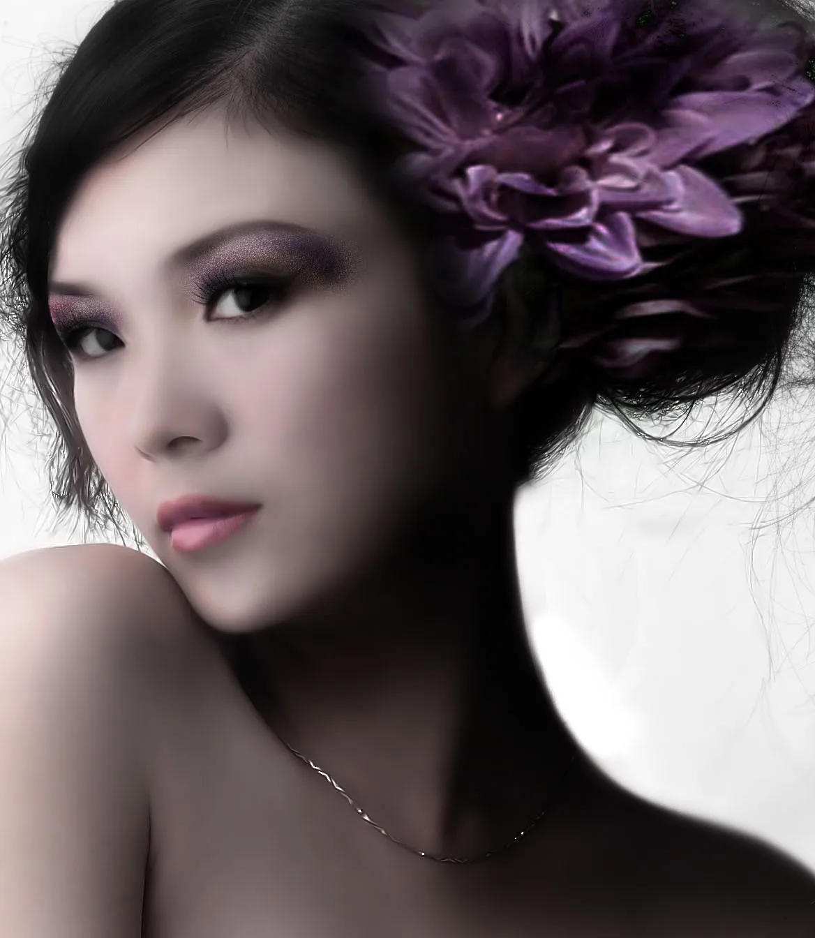 紫色的眼妆和紫色大花搭配得真完美