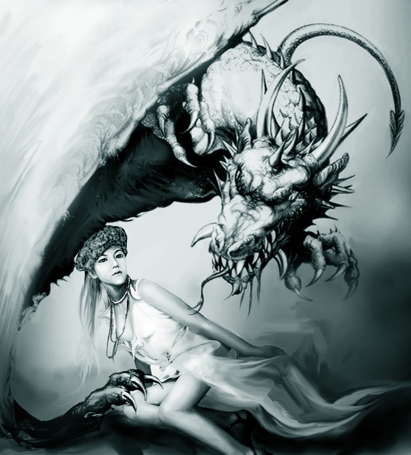 美女逗恶龙~~龙好有爱~~~