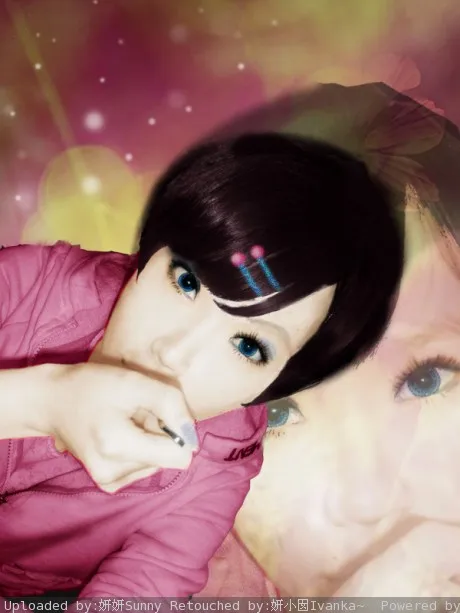我想要有很梦幻,很温馨的效果.要是能把妍妍的衣服变的更鲜亮更可爱就好了.头发有点小乱,麻烦请帮我修饰一下.妍妍还想要有很闪的小头饰.一切就拜托大师们了.辛苦了!!!非常感谢啊!! 妍妍非常期待~~~~^0^ 用途:娱乐 基调:典雅唯美 背景:稍作调整 艺术化:轻微艺术化