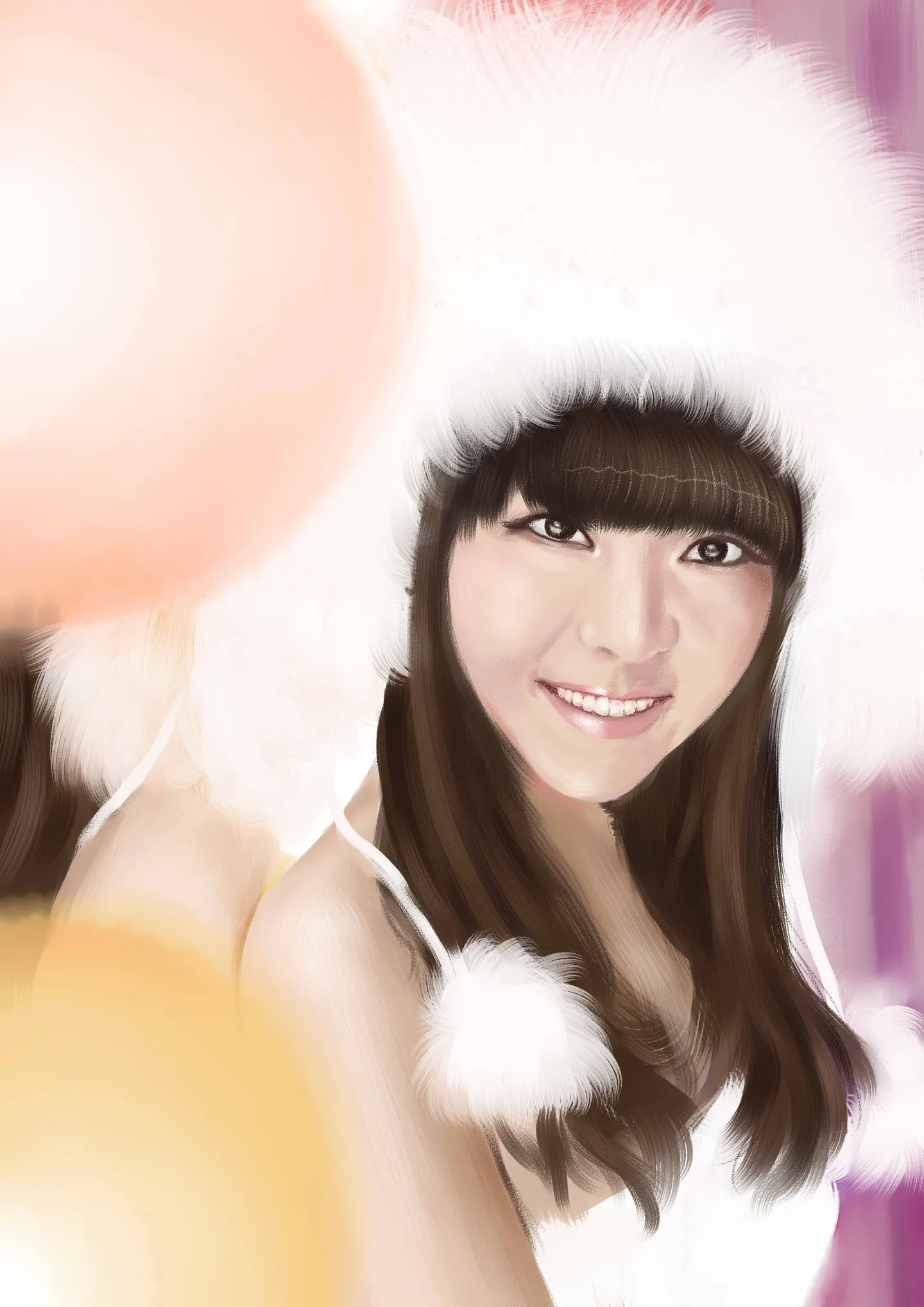嘿嘿谢谢!是因为原图太白了没别的色彩小颜想加点色彩进去把~!我很喜欢喳~!帽子的毛毛也感觉好可耐。哈哈,谢谢辛苦呀。么么