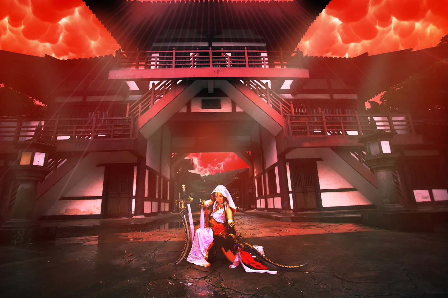 谢谢大人赐图~~红色色调让整个画面更加充满压迫感了,顶上光线透射下来是个亮点啊……还有这一团团的红云好像棉花云