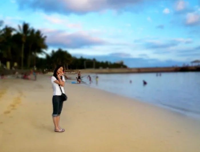 沙滩是否能够弄得干净一点?背景可不可以由朦胧的感觉?多谢!