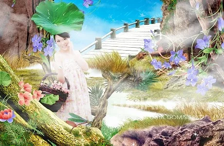 希望换个有真实花丛的背景,感觉好像在花丛中嬉戏的感觉,能阳光点的。 用途:家庭纪念 艺术化:保持真实性 基调:欢悦明快的