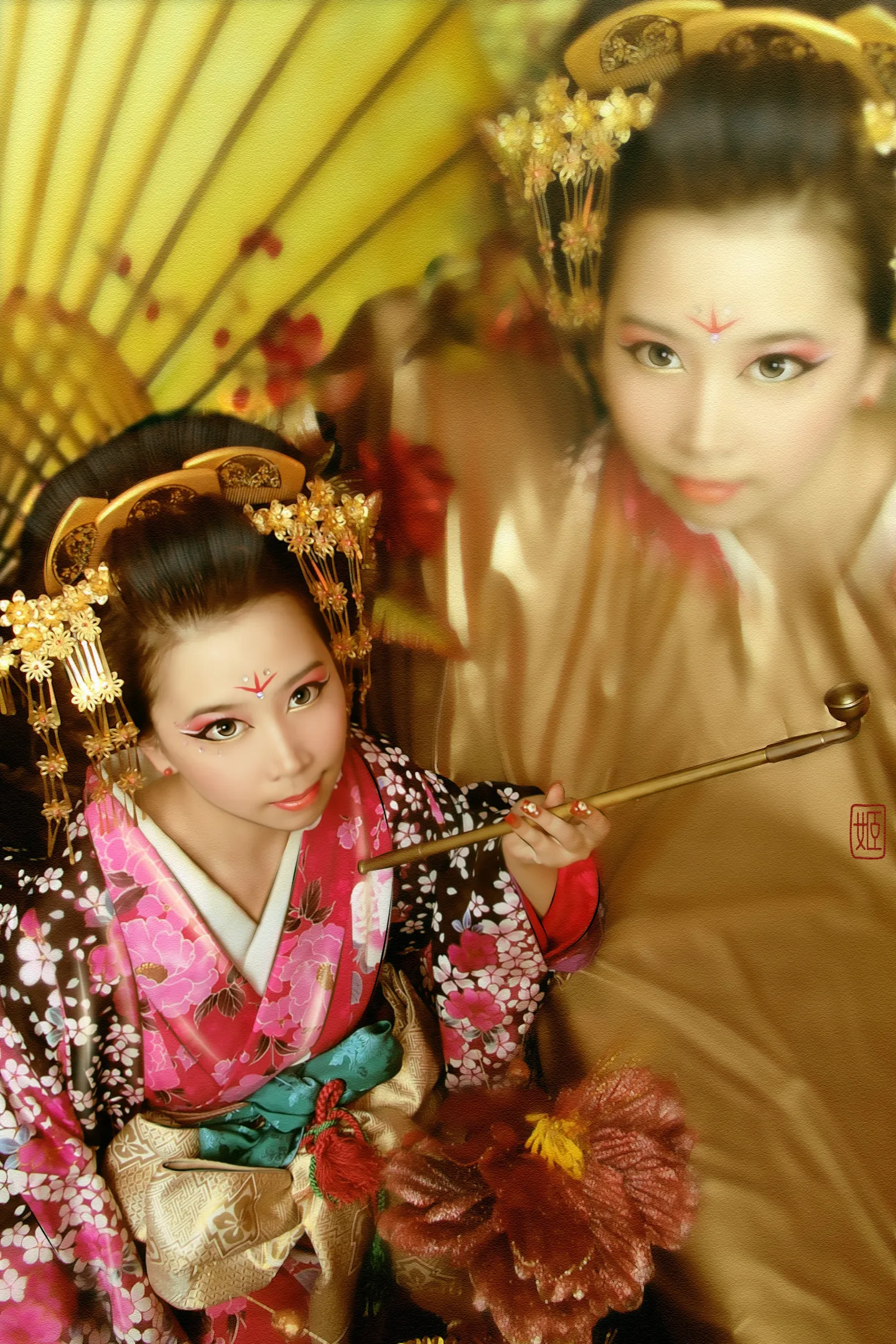 更惊艳,华丽点,造型可参考《樱花乱》这部电影中的花魁,顺便瘦下脸