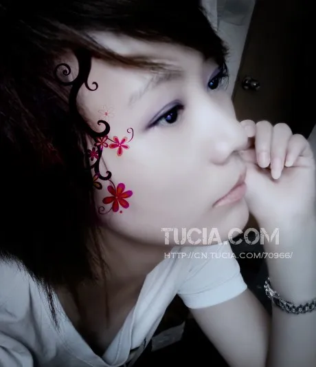 脸的边上可以搞些花的纹身。。。我要那种眼睛带亮光的梦幻的感觉。像自由幻想的差不多就可以