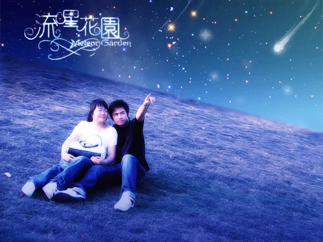 各位高手,我希望能把这张照片P成就像流星花园这部电视剧中一起看天上的流星雨的样子,要求比较高啊,希望有高手完成我的愿望,感激万分