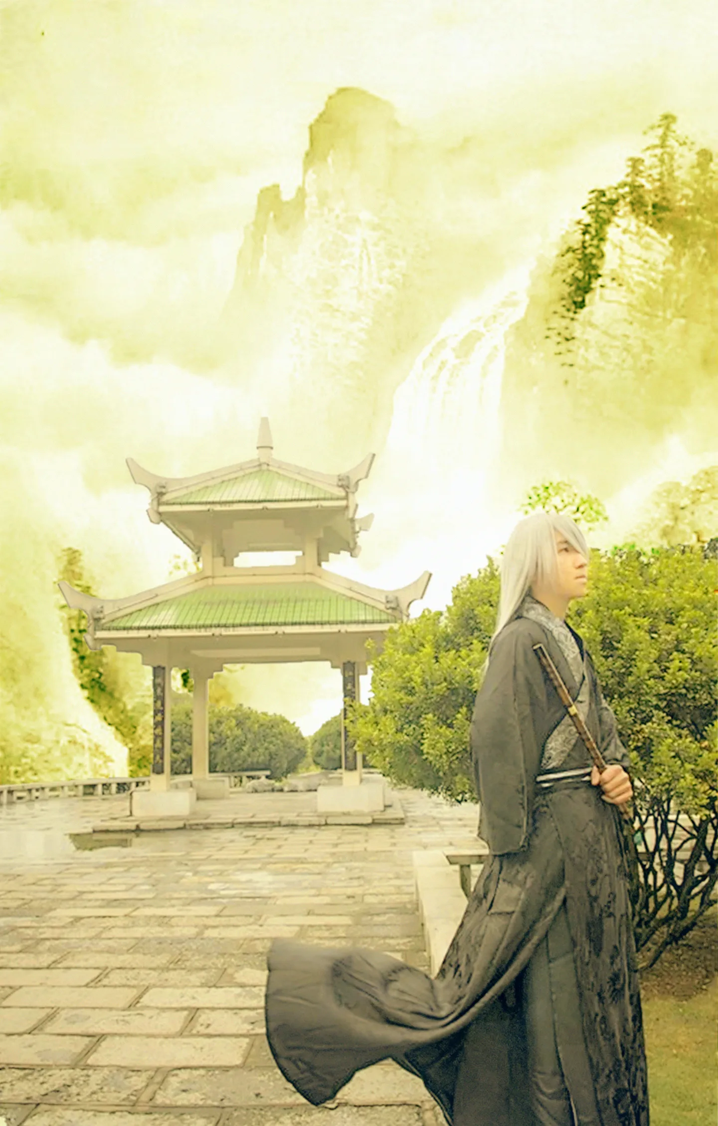 你是说 换天的时候换成山水吗~~~所以原片里带亭子和树?额 我回去翻翻~~~