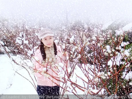 将皮肤颜色调亮啊,眼袋和雀斑去掉,显的粉嫩点,后面的房子背景模糊,或者干脆换雪景啦(反正看不出房子就OK了)原来头顶上模糊的一块给去掉,最好PS上下雪的感觉啦.
