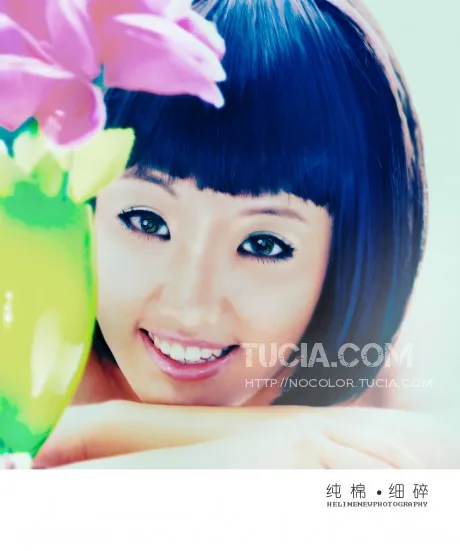 把整体的色调换下,希望看起来笑的不是那么假...最好能把脸型稍稍修改下... 艺术化:轻微艺术化
