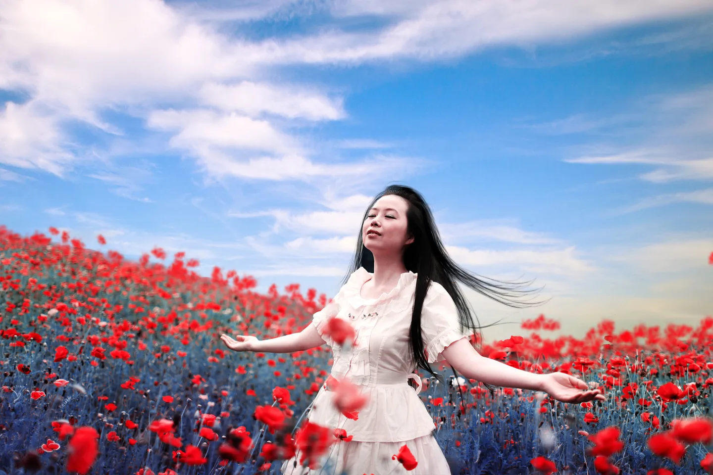 虞美人盛开的山坡~~ 深度艺术化 美化人物脸部 美化身材/体型
