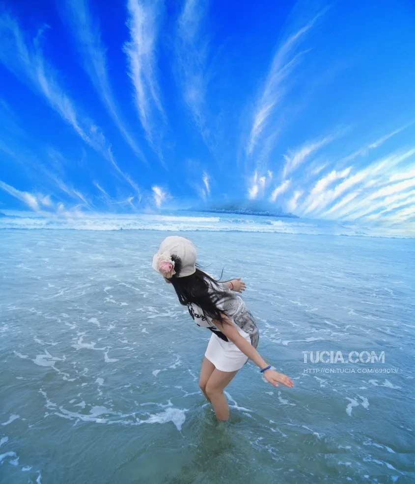 想要蓝天大海,远处的人物处理掉,调色! 艺术化:保持真实性