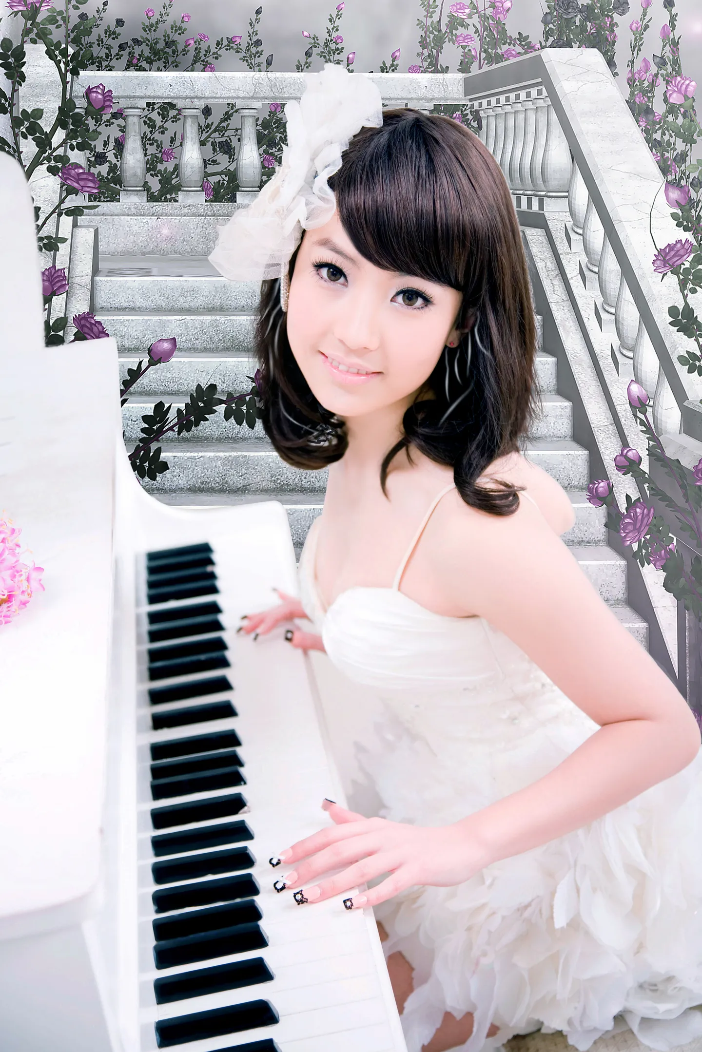 希望能更么梦幻一点~~~还是白色的基调最好~~~ 换一个好看的背景~~~~突出人物哦!!! 谢谢~~~