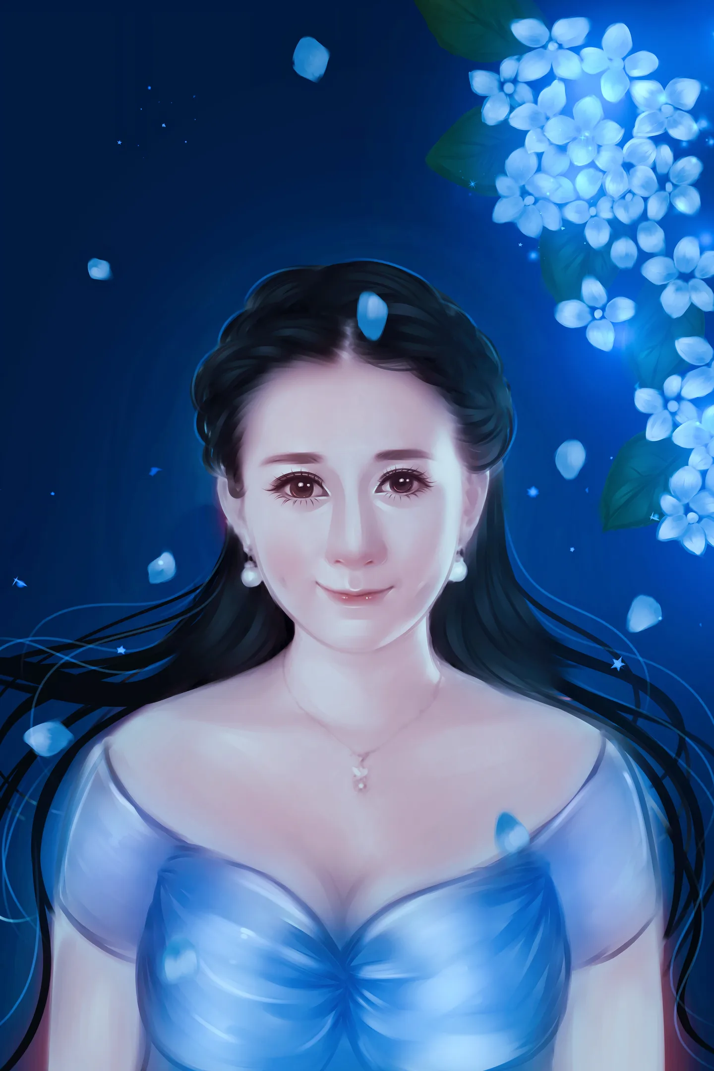 飘逸的发丝,美美的蓝花,漂亮的脸庞。。比原图好看无数倍呀,睡前收到桃子美图好幸福!桃子晚安 (表情) (表情) (表情)大么么! ...