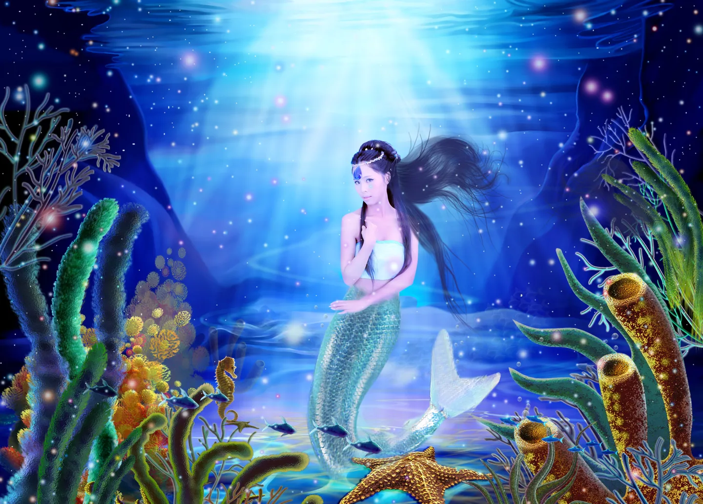 我只是很想把这一组美人鱼相片的背景换一换·· 要求不高·就是一个海底的背景·O(∩_∩)O谢谢