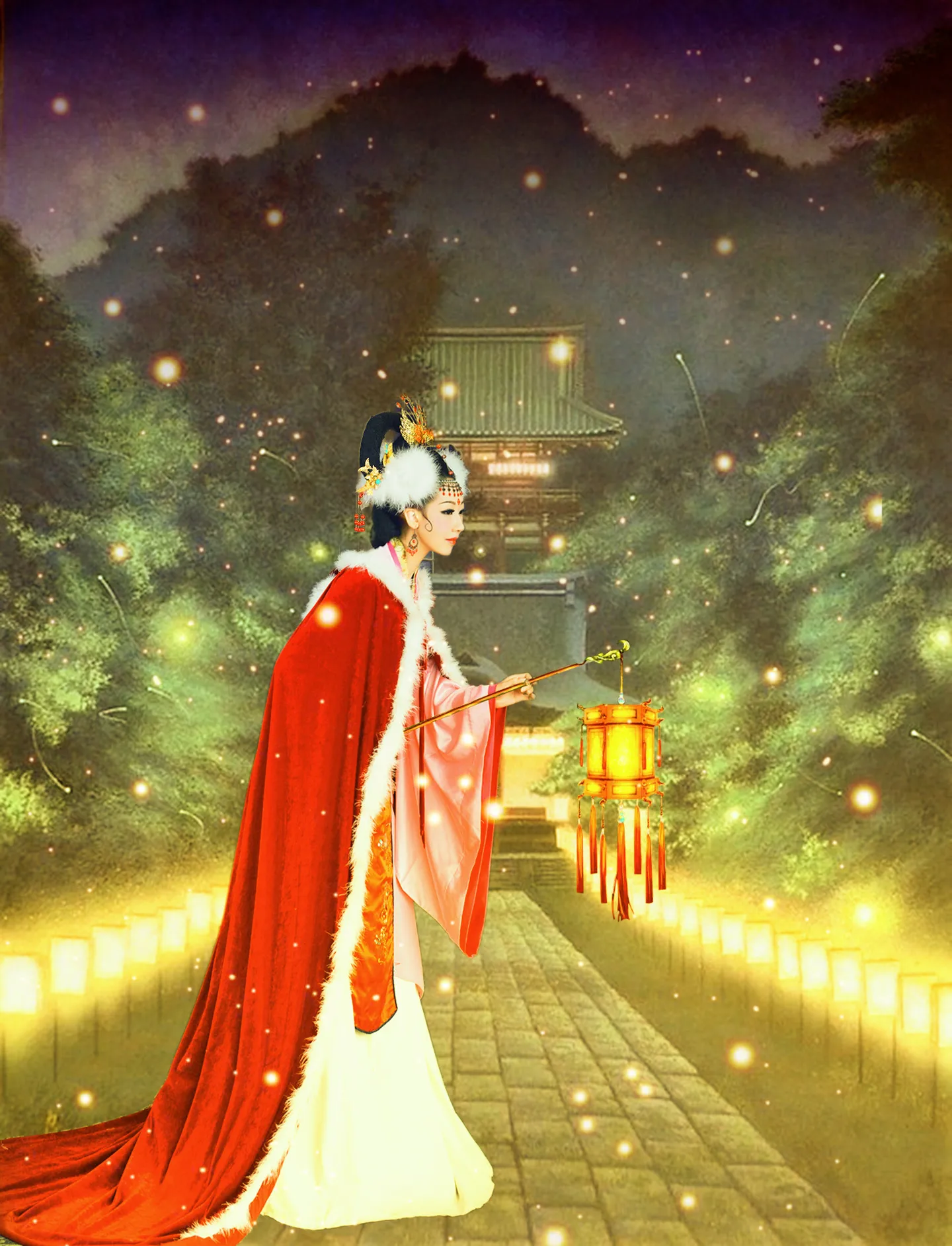 这张图真是太好看了,又有夜景又有灯光,还有莹莹的落雪,而且还帮我换了个这么高大上的灯笼,好好看,好喜欢呀,谢谢哈比大神