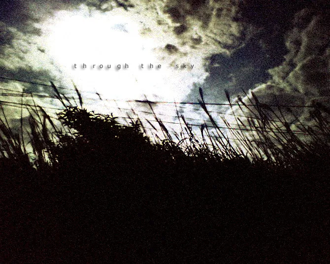 在天空上写上一行较小的圆体英文: Through the sky 像参考图片那样就行.. 云彩可以适当勾勒出更浓的色彩. 基调:典雅唯美
