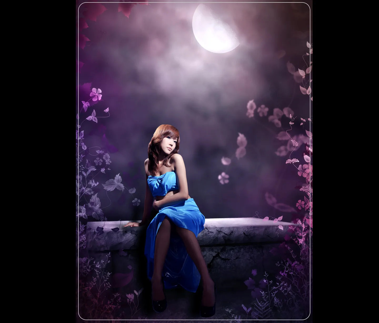 满月……粉色花瓣飞的感觉很好,很喜欢……呵呵,推推推