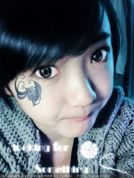 想在脸上加一个纹身,改变照片的颜色,弄可爱点吧 呵呵