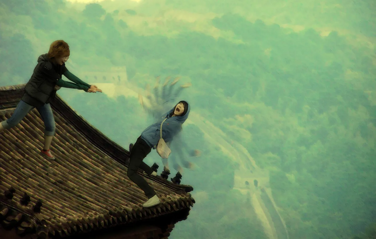 我有一次差点掉湖里了呢~我想起我在挣扎的时候....那个手