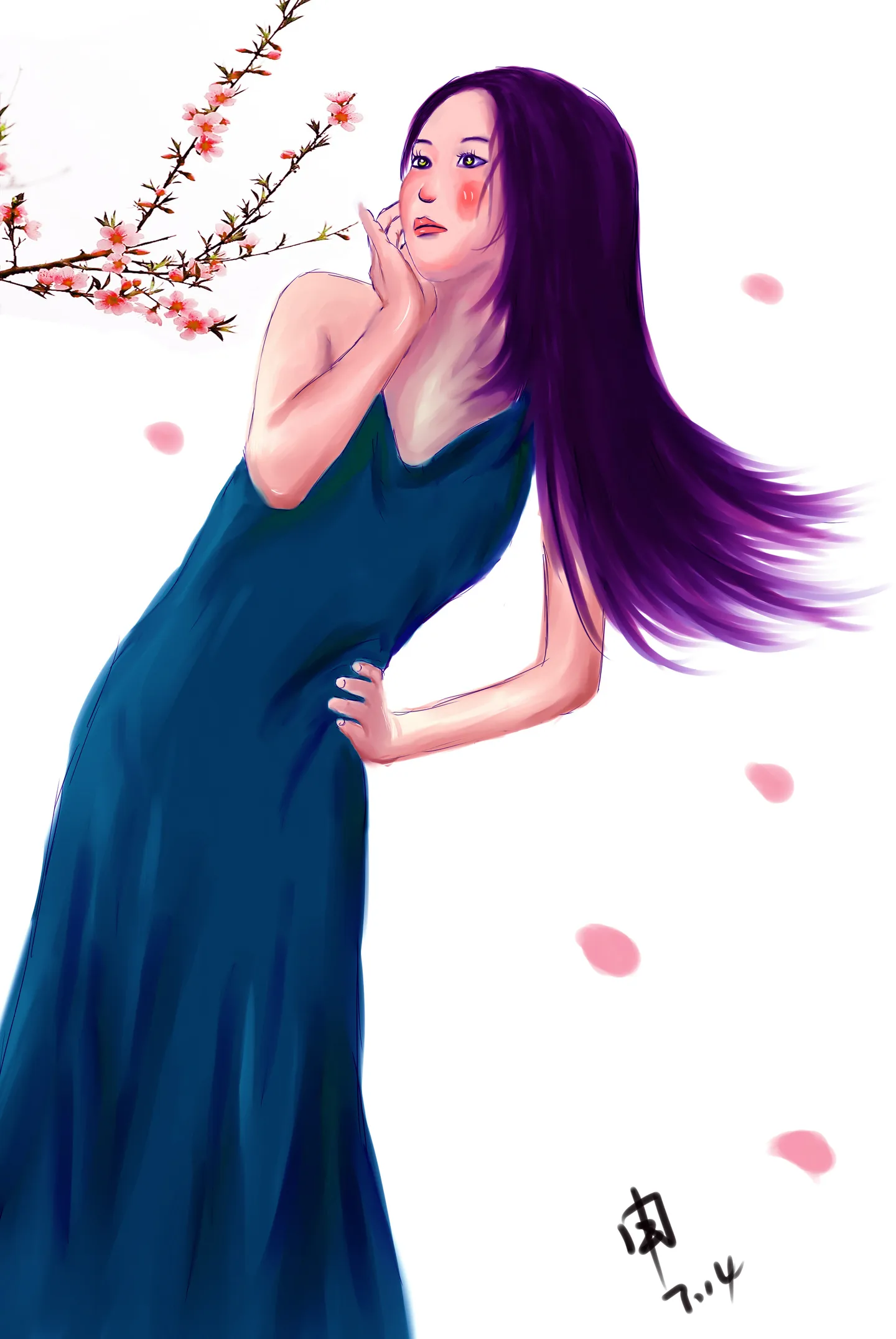 偶也觉得脸上那红晕有点突兀……嗯……其实如果木有那桃花,都用花瓣可能更好~